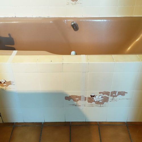 Réalisation d’une découpe et installation d’un portillon anti-éclaboussures.